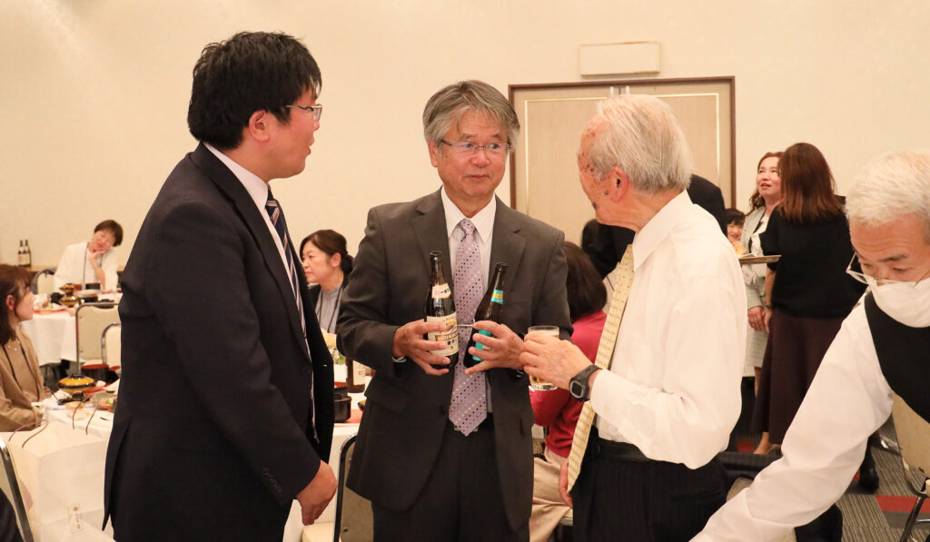 開催後の懇親会では松田英毅学長をはじめ先生方にもお越しいただき懇親会を開催しました。